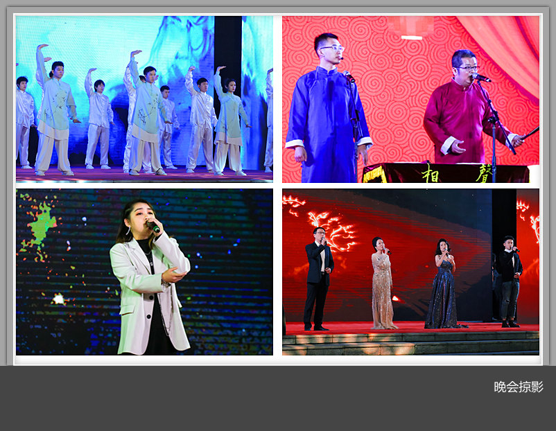 晚会在大学生管乐团演奏的《歌唱祖国》的乐曲声中拉开帷幕。整场晚会节目精彩纷呈,热辣动感的舞蹈《lion》、感人至深的歌曲《萤火》、风趣幽默的相声《语言潜规则》、紧扣大学生活的短剧《恋爱是种病》、极具异域风情的器乐演奏《鸽子》、《沙漠玫瑰》、彰显中华传统优秀文化的健身气功《八段锦》、酷炫的社团节目充分展示了美高梅娱乐场 师生的青春风采和艺术教育成果。