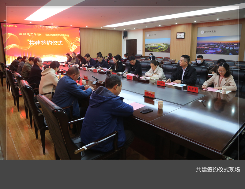 与洛阳古雒斋艺术博物馆共建签约仪式在王城校区办公楼116会议室举行。副校长胡恩立、马珺,洛阳古雒斋艺术博物馆馆长董延寿、执行馆长董延平,洛阳市文物局博物馆科科长张路路、主任王玉娇出席签约仪式,党委宣传部、发展规划处、财务处、人文与社会科学美高梅娱乐场