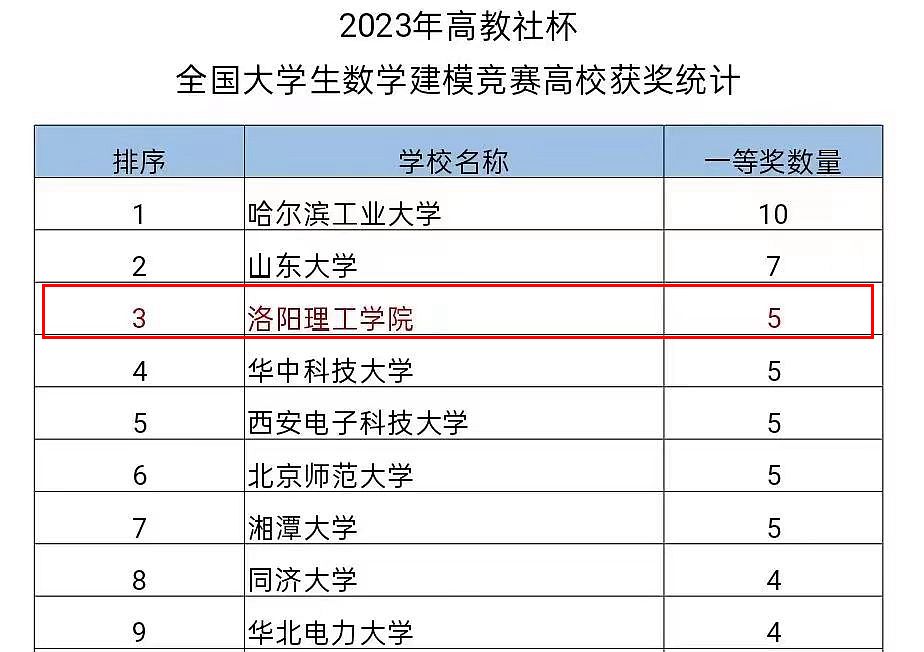 在2023年高教社杯全国大学生数学建模竞赛中,一等奖获奖数量高居全国高校第三名,图为高校一等奖获奖数量统计表。