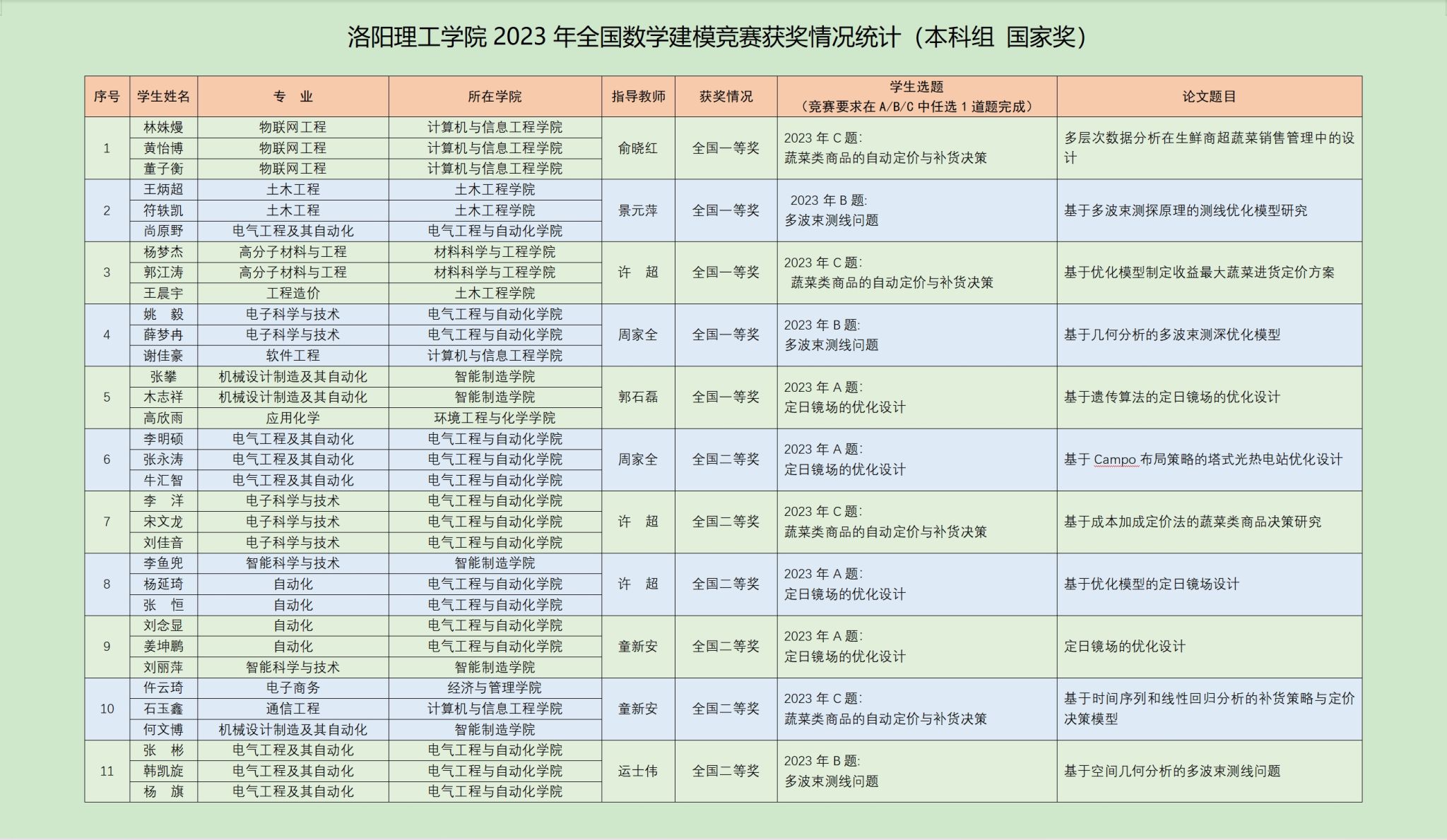 参加2023年高教社杯全国大学生数学建模竞赛(本科组 国家奖)获奖情况统计表