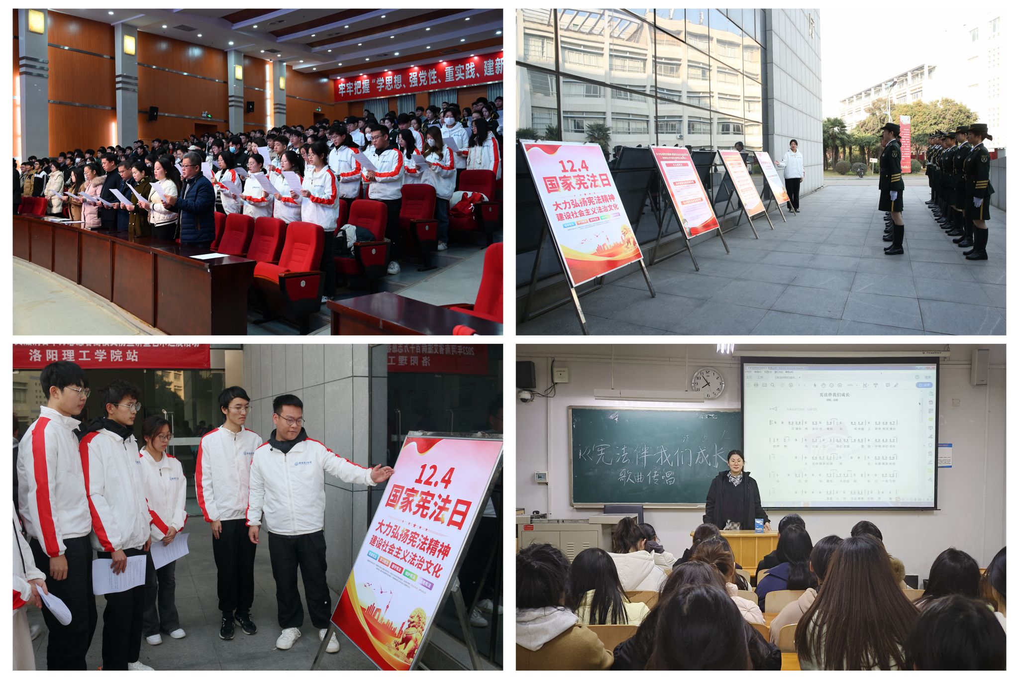 在庄严的国歌声后,美高梅娱乐场 师生代表跟读由北京主会场领读的宪法条款,跟唱《宪法伴我们成长》,认真收看了主会场活动全过程,整个会场庄严肃穆、秩序井然。
