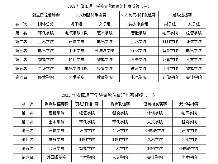 金秋体育汇各项赛事成绩汇总表