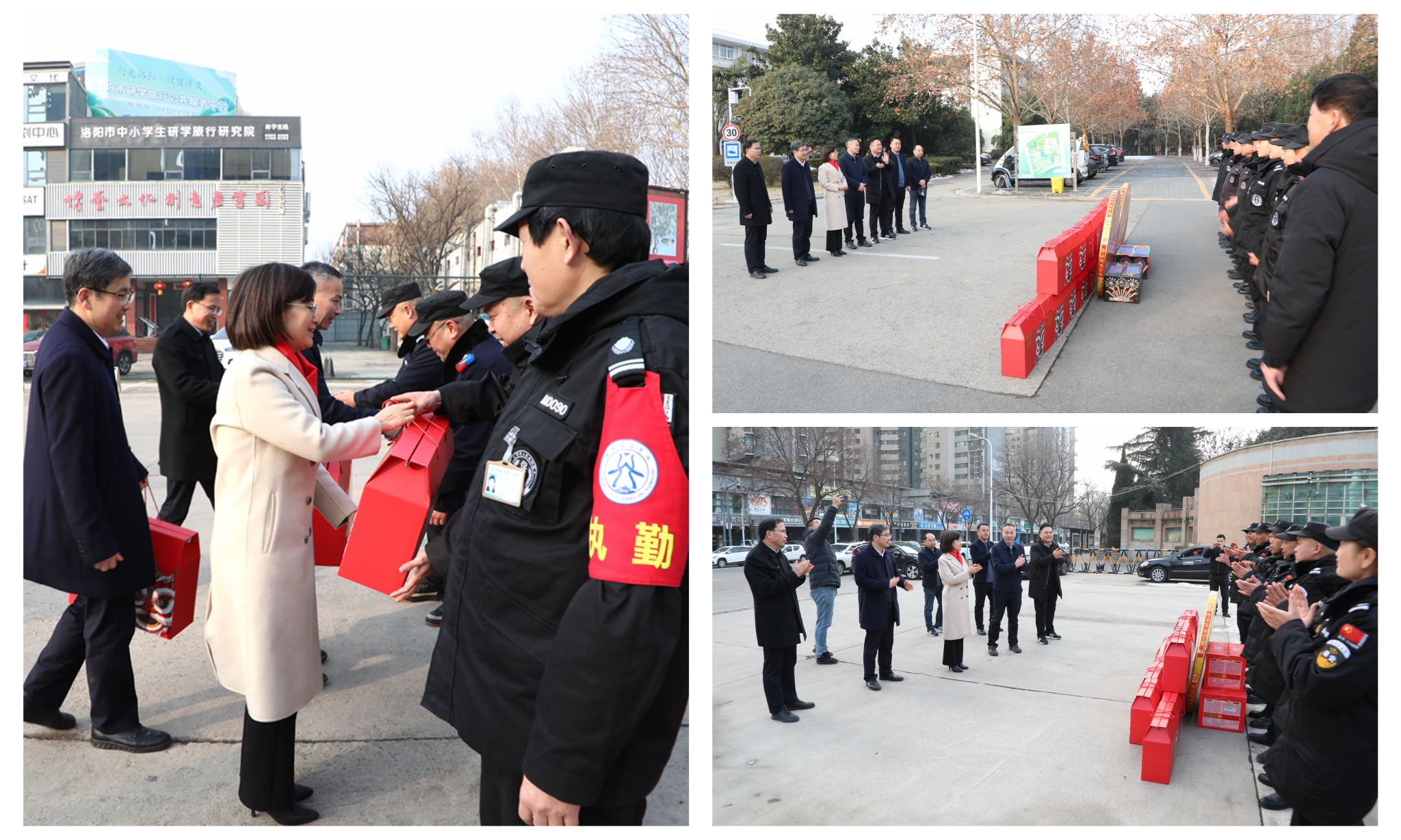 在农历甲辰龙年新春佳节来临之际,2月9日上午,校长丁梧秀,党委副书记、工会主席曾涛,副校长王新武带领校工会和保卫处相关负责同志一行先后到三个校区亲切看望慰问春节期间坚守在一线工作岗位的安保人员,向坚守一线的安保人员送上慰问品。