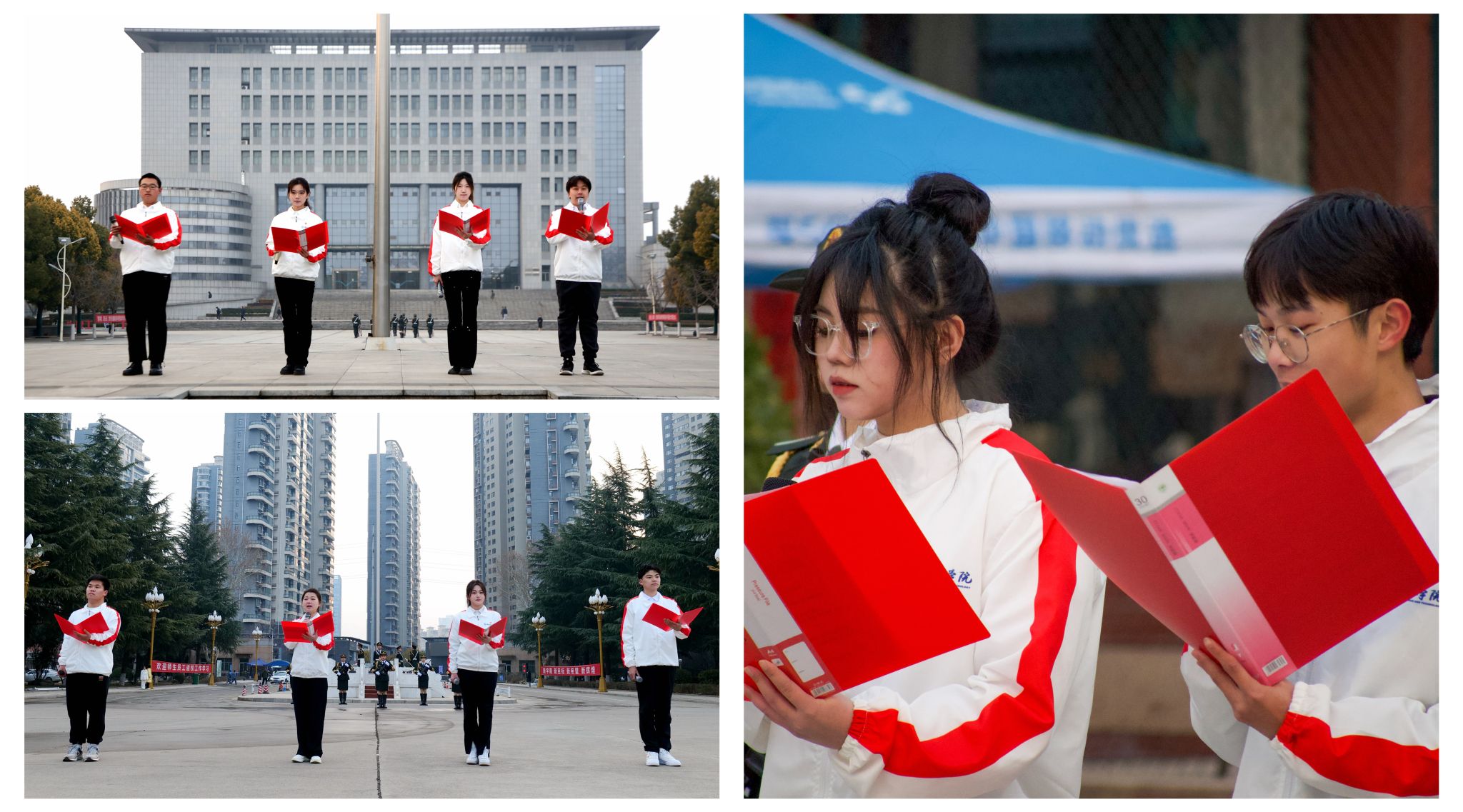 早上7点30分,升国旗仪式正式开始。国旗护卫队迈着整齐的步伐走向广场,伴随着雄壮的《义勇军进行曲》,鲜艳的五星红旗冉冉升起。在场的全体师生深怀对祖国无限的热爱和崇高的敬意,向国旗行注目礼,唱国歌。升旗仪式后,沈佳文、全苗等9位同学,分别在三个校区进行了题为《担当时代重任,立志为国成才》的主题演讲。