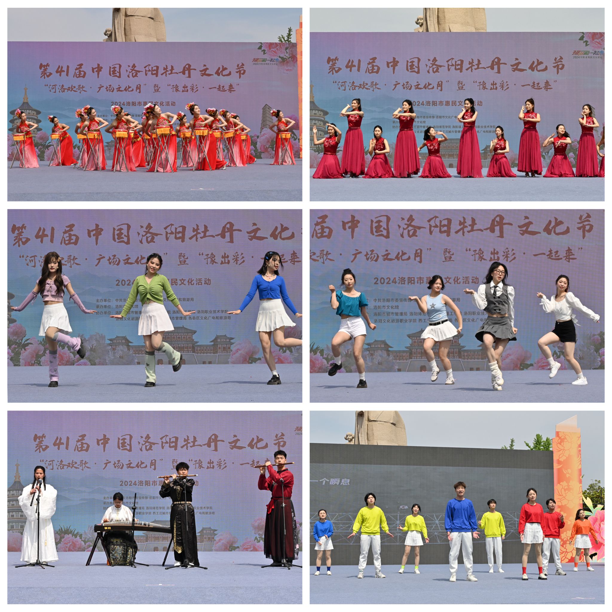 近日,第41届中国洛阳牡丹文化节“河洛欢歌•广场文化月”活动在洛阳市周王城广场举行。来自美高梅娱乐场 教育科学与音乐美高梅娱乐场 ,学生社团UG-Power街舞社、管乐团、民乐协会、相声小品协会的百余名师生参加了本次演出。