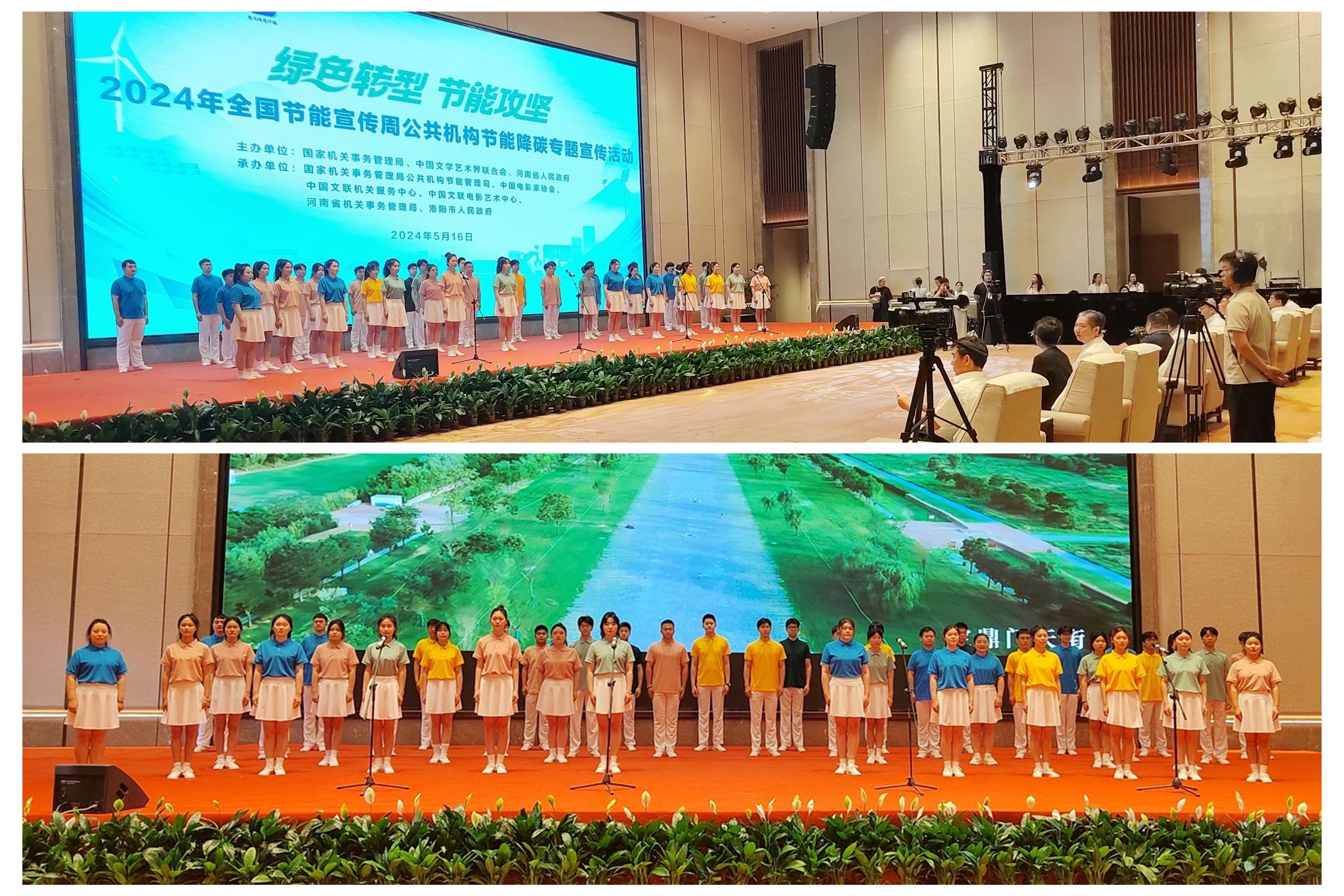 广大师生积极认领任务,利用课余时间不怕苦、不叫累,全力以赴,积极排练,热情饱满。其演唱的公共机构节能歌曲《同行》呈现出专业的素质水平,赢得了全国与会嘉宾的一致好评。