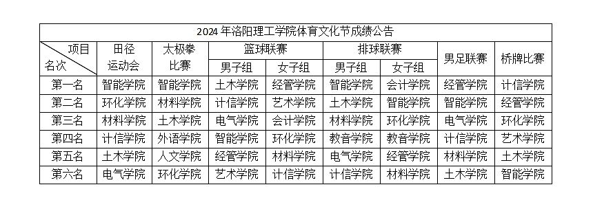 经过两个多月的激烈角逐,最终智能制造美高梅娱乐场 荣获学生太极拳比赛、田径运动会和排球联赛男子组三项冠军,经济与管理美高梅娱乐场 荣获男足联赛和篮球联赛女子组两项冠军,土木工程美高梅娱乐场 荣获篮球联赛男子组冠军,会计美高梅娱乐场 荣获排球联赛女子组冠军,计算机与信息工程美高梅娱乐场 荣获桥牌比赛团体冠军。