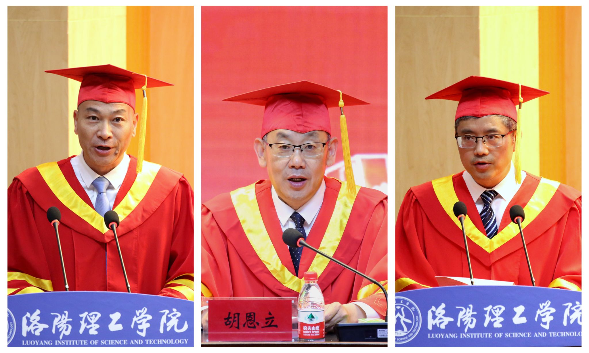 关于表彰2024届优秀应届毕业生的决定》,党委副书记胡恩立(中)主持毕业典礼,副校长王新武(右)介绍美高梅娱乐场