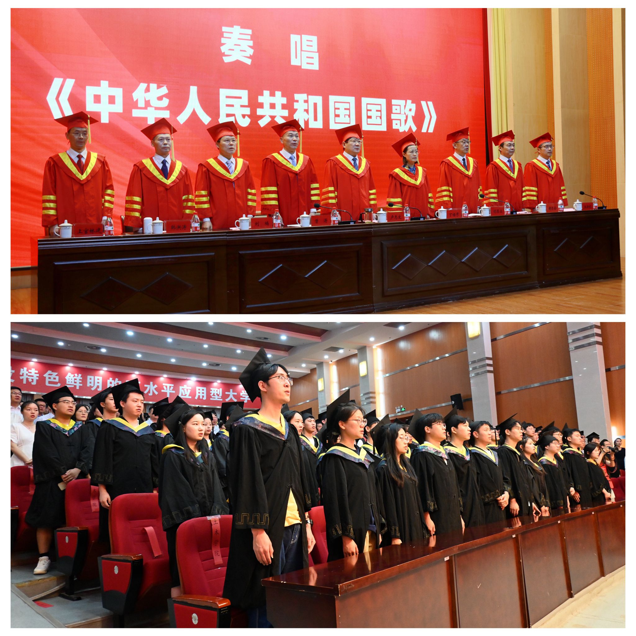 毕业典礼在雄壮激昂的国歌声中拉开帷幕