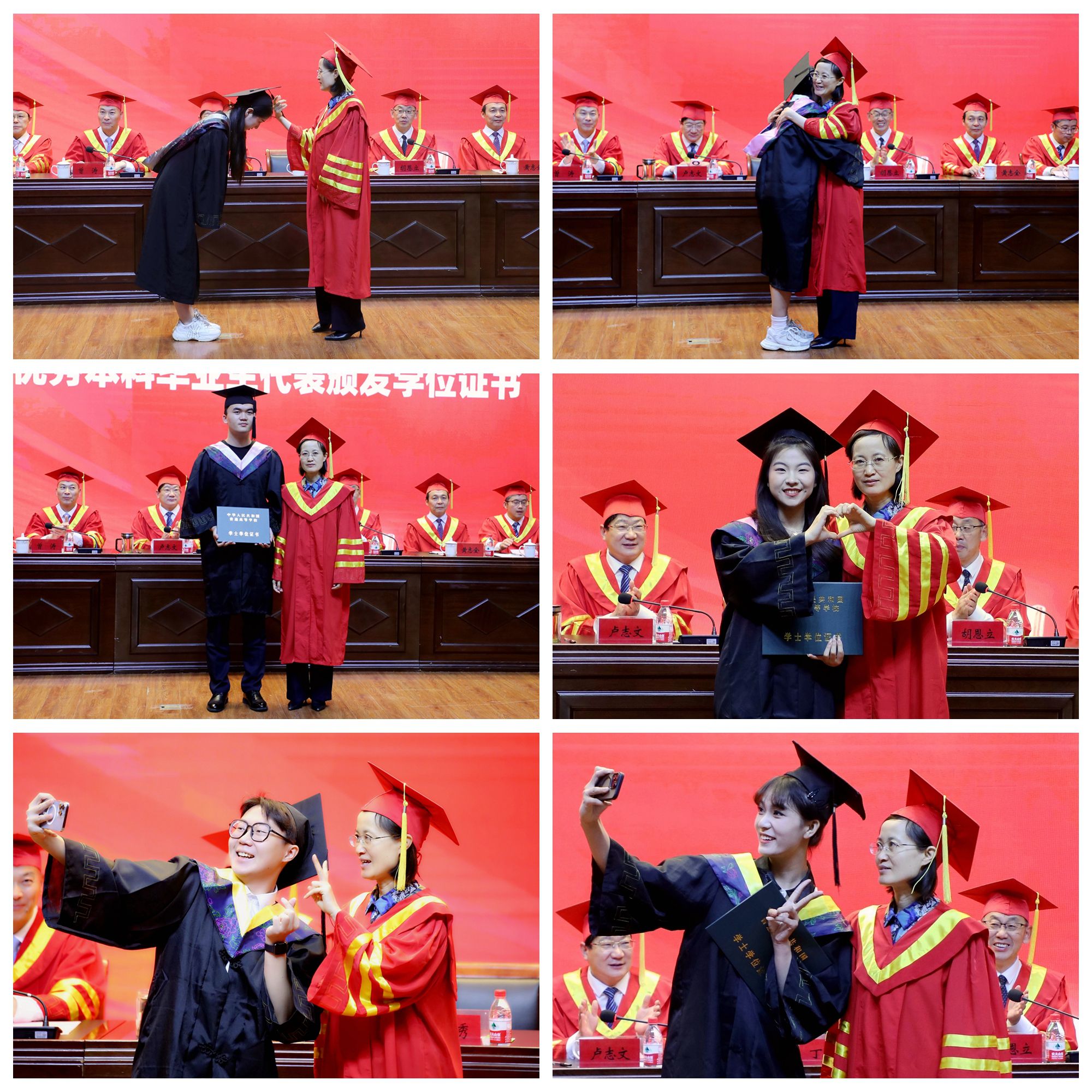 校学位评定委员会主席、校长丁梧秀为2024届优秀本科毕业生代表颁发学位证书、拨正流苏并一一合影留念