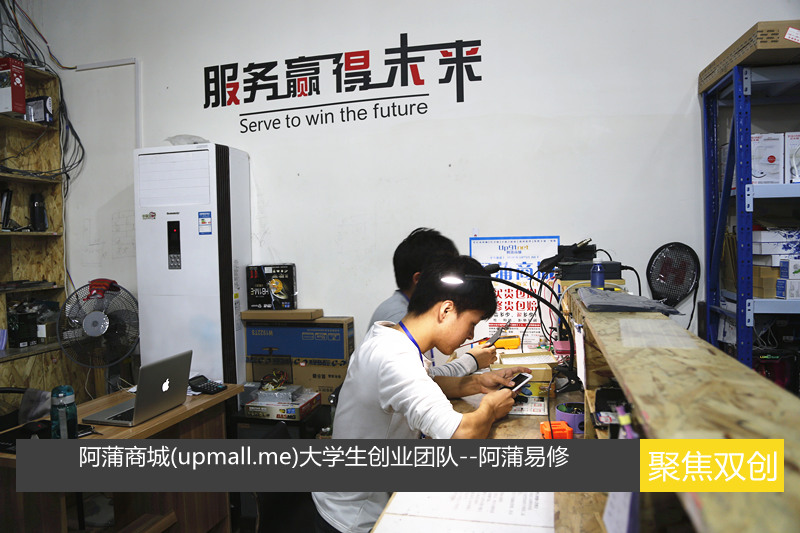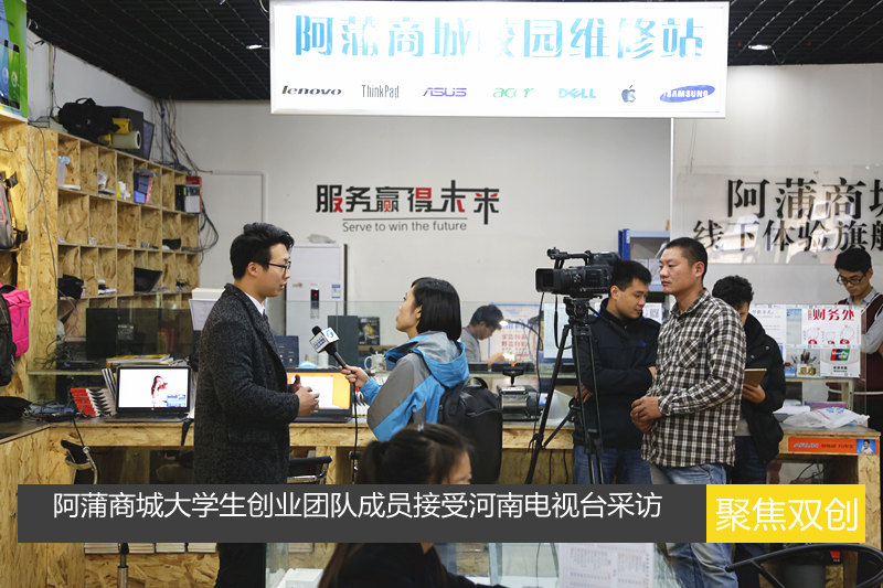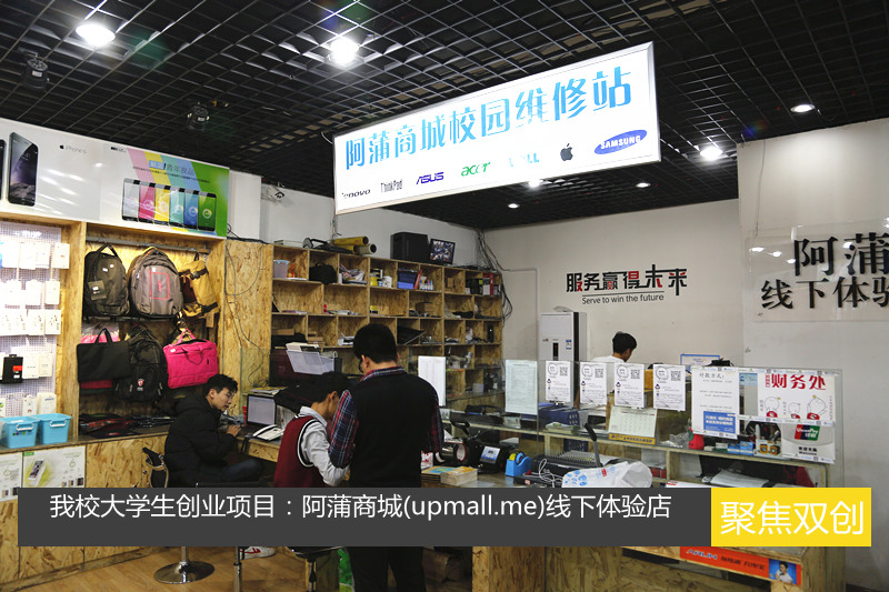 为了支持大学生创业,方便阿蒲团队更好地筹备大学生创新创业大赛和创业项目的推进,校团委专门为其提供了一间办公室,大学生就业指导中心还安排相关老师指导帮助,后勤管理处也为其提供了经营场所。一段时间下来,阿蒲商城项目获得了“云台山杯”2015年中国河南—美国区域高校大学生创新创业大赛优秀奖,“阿蒲易修‘O2O’勤工俭学团队”入围第四届中国创新创业大赛团队组行业总决赛。龚成龙说,通过这些比赛,项目被越来越多的人认可,在很大程度上增强了团队的信心,作用很大。