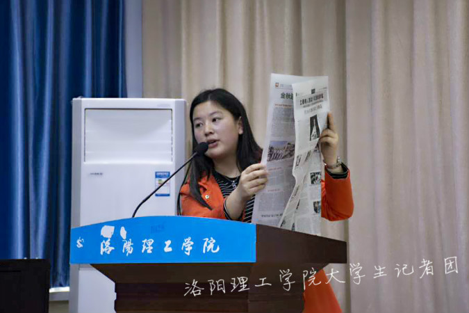 牛秋菊老师为大家宣读了大学生记者团领导成员名单,并对上一届全体成员所做的工作和取得的成绩表示感谢,同时也对通过选拔的新成员表示祝贺和欢迎。她指出,作为一名校园记者,同学们应该深入了解国情与党的方针政策以及校情校史,并向大家提出了三点要求:第一,坚持正确的舆论导向,讲好洛理工的故事;第二,延承良好的团队作风,打造出色的学生团队;第三,不忘初心,勇于实践,提高业务技能。