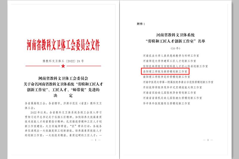 马颖劳模创新工作室被命名为河南省教科文卫体系统“劳模和工匠人才创新工作室”。其中,优秀工匠人才和“师带徒”标兵是美高梅娱乐场