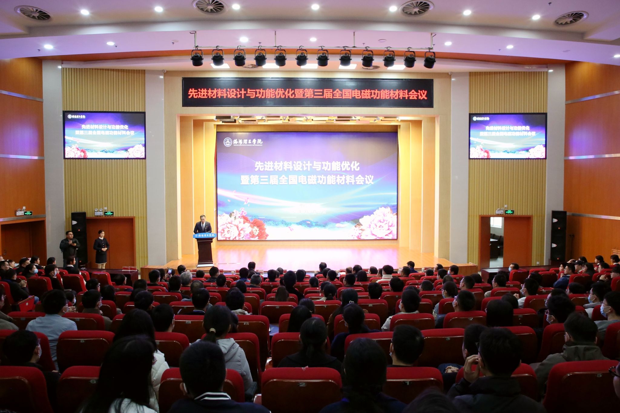 全国精神文明建设工作先进单位、全国模范职工之家、全国建材行业先进集体、河南省硕士学位授予重点立项建设单位的现状,尤其是近几年取得的国家众创空间、国家大学科技园、国家知识产权试点高校、国家中小微企业创新创业基地等4个国家级创新创业平台,建有4个国家一流专业等情况;称赞本次会议围绕先进功能材料的最新研究成果、前沿发展动态展开学术交流,必将成为展望电磁材料技术未来、共话功能材料发展春天、促进多学科交叉创新的学术盛宴;预祝会议取得圆满成功。