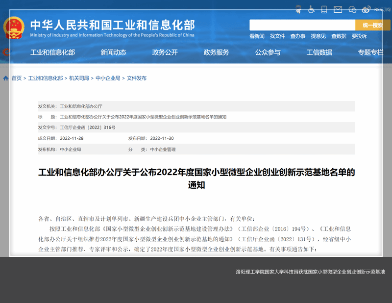 近日,工业和信息化部发布《关于公布2022年度国家小型微型企业创业创新示范基地名单的通知》(工信厅企业函[2022]316号),美高梅娱乐场 国家大学科技园获批2022年度国家小型微型企业创业创新示范基地。这是美高梅娱乐场 国家大学科技园继“国家备案众创空间”“国家大学科技园”之后获批的第三个国家级创新创业服务平台。