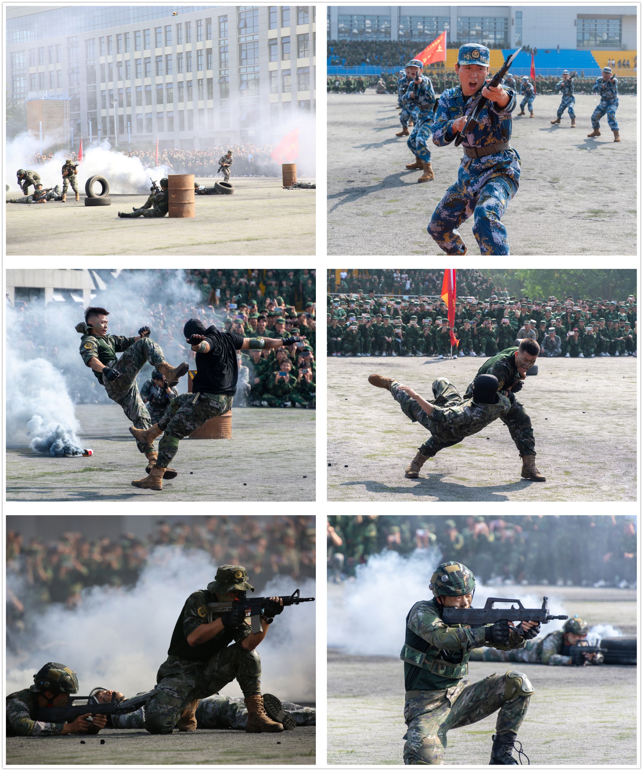 上午9时,开学典礼在庄严的国歌声中拉开帷幕。2024级6500余名新生身着迷彩,以饱满的热情、整齐的步伐、昂扬的斗志接受检阅,有序进行军训成果汇报。青年先锋营的同学们带来了一场震撼、精彩的军事战术演练,赢得了全场师生的阵阵掌声,充分展现出当代青年大学生过硬的身体、军事素质和青春风采。