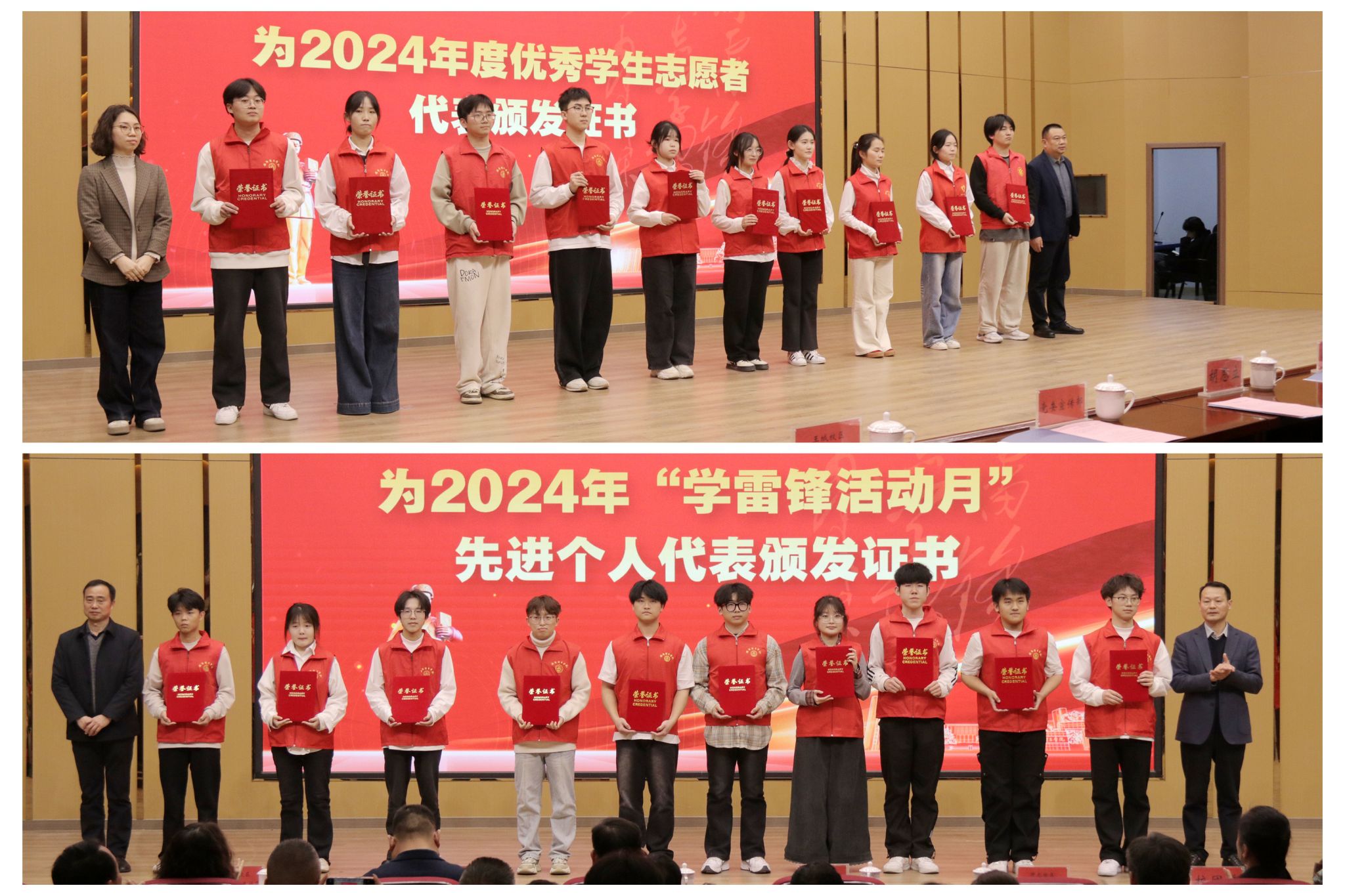 仪式对2024年美高梅娱乐场 涌现出的志愿服务和学雷锋先进个人进行了表彰。电力电气工程美高梅娱乐场 曲哲浩、智能建造与土木工程美高梅娱乐场 余福林分别代表优秀志愿服务项目指导教师、优秀志愿者作主题发言。校团委负责人对本次“学雷锋活动月”工作进行了部署。
