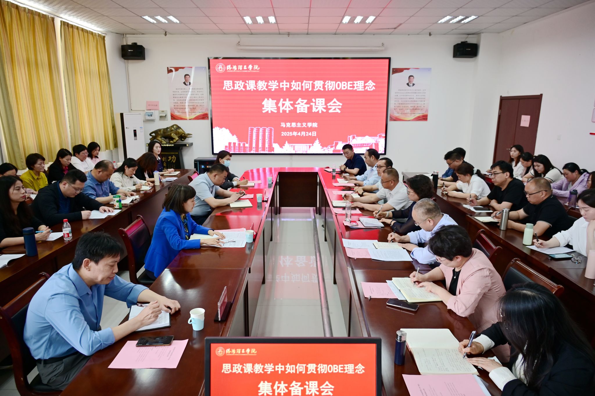 党委宣传部、校长办公室、教务处负责人,马克思主义美高梅娱乐场 全体教师和部分学生代表参加集体备课会。