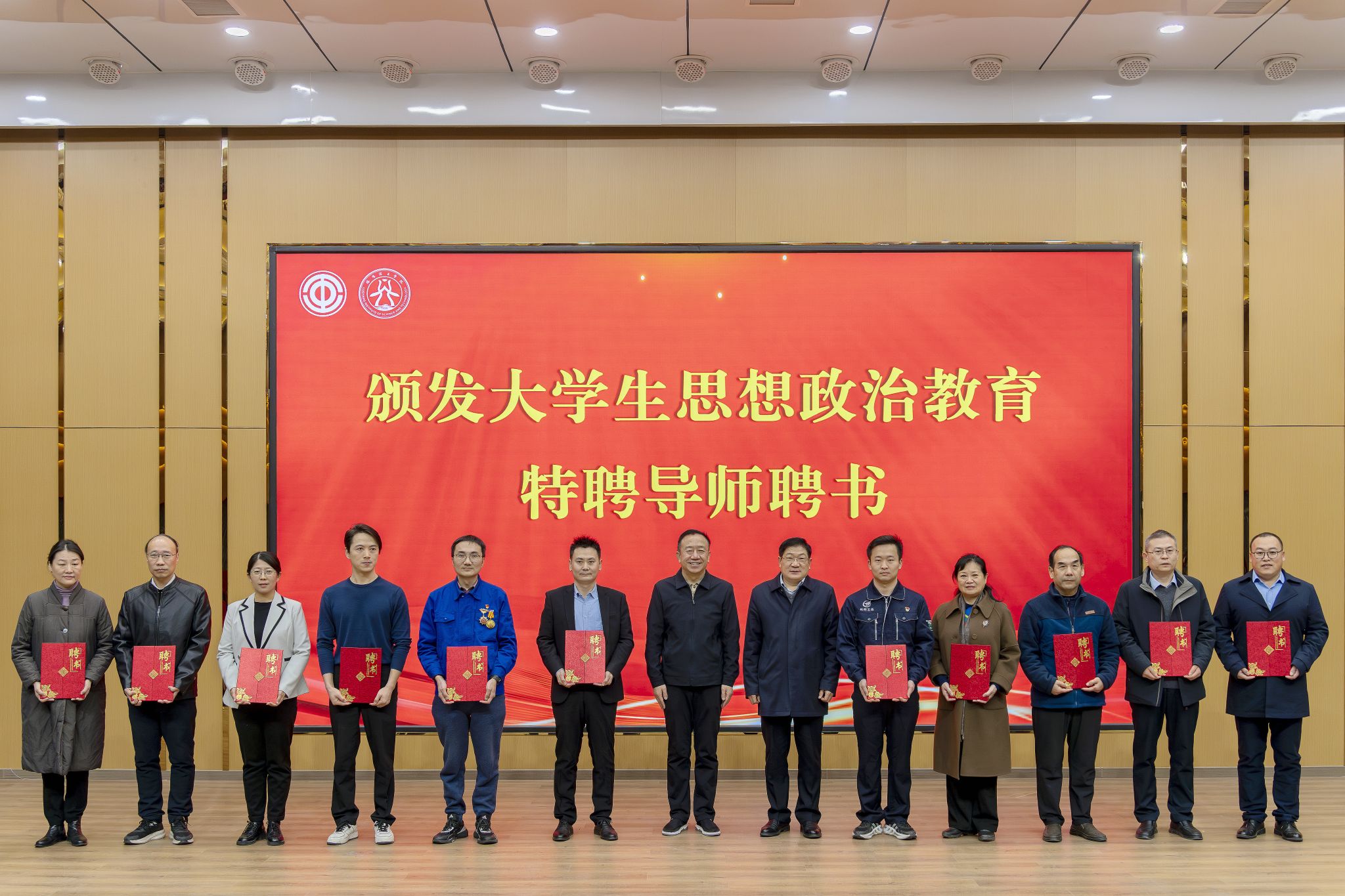 胡恩立宣读大学生思想政治教育特聘导师名单,刘雪峰和卢志文共同为特聘导师颁发聘书。