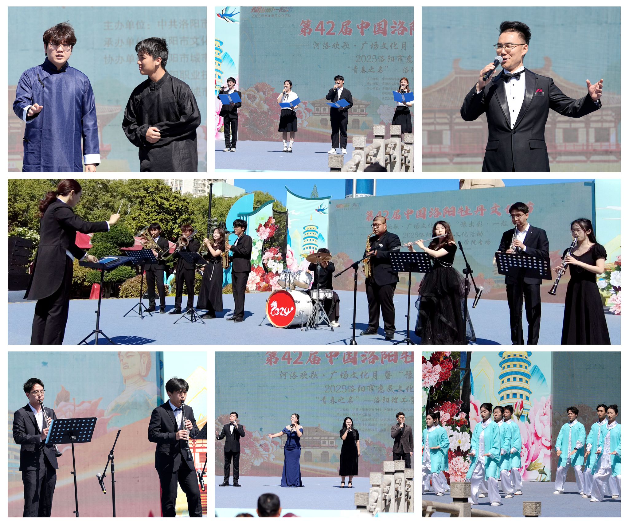 专场演出节目形式多样、精彩纷呈。器乐合奏《象王行》传递中华优秀传统文化的古朴与深邃;舞蹈《西子湖.初妆》与春天的牡丹花城相衬相映;诗朗诵《诗咏神都·花开万象》、相声《舌尖上的洛阳》讲述着洛阳的辉煌历史;管乐合奏《康康舞曲》、单簧管二重奏《lemon》展现了美高梅娱乐场 青年学子的艺术风采。演出还专门选取了具有浓郁地方特色的豫剧《拷红》《穆桂英挂帅》选段和健身气功·八段锦,向海内外的游客展示了天下之中、河洛之源的厚重与豪迈。大学生校园歌手和青年声乐教师们先后为大家带来了歌曲《音域无界》《灯火里的中国》《为友谊干杯》为盛会增光添彩。专场演出在男女声四重唱《向往》的歌声中落下帷幕。