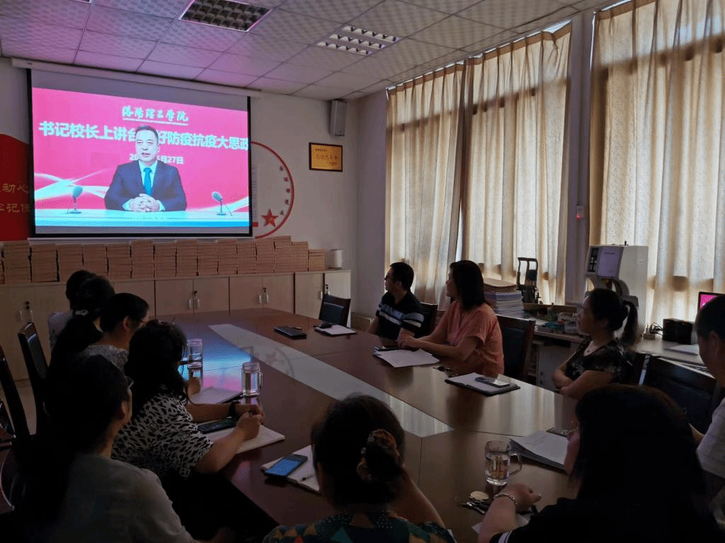 6月2日下午,财务处组织全体人员在办公楼120室集中收看了《校党委书记陈岩、校长张锐“讲好防疫抗疫思政课”》的网上思政微课。