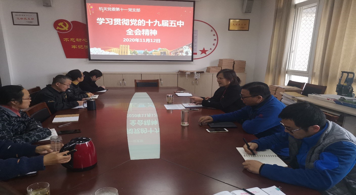 11月12日,机关党委第十一党支部在办公楼120房间组织全处人员召开专题学习会,深入学习贯彻党的十九届五中全会精神。会议由支部书记邹丽主持。