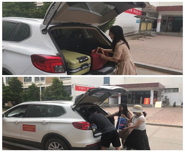 教工志愿服务队,驾驶私家车帮助毕业生转运行李,做好“最后一公里”的送行服务工作,得到了美高梅娱乐场