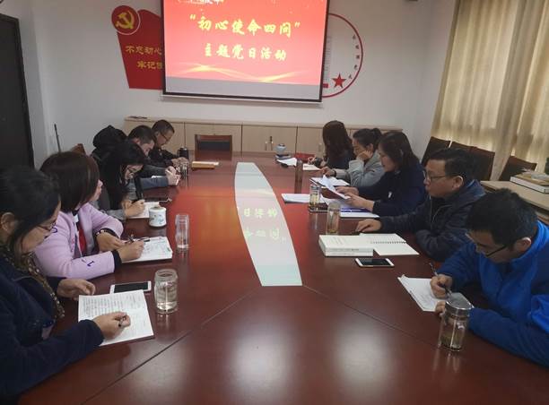 党委组织部统一安排,机关党委第十一党支部于11月14日下午在办公楼120室组织开展“初心使命四问”主题党日活动,全体党员参加,会议由党支部书记邹丽主持。