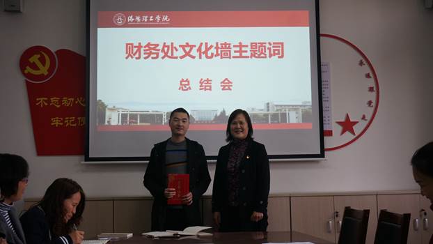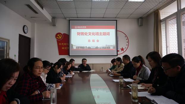 11月5日下午,财务处全体人员在办公楼120室召开征集财务处文化墙“主题词”总结会,会议由副处长黄平主持。