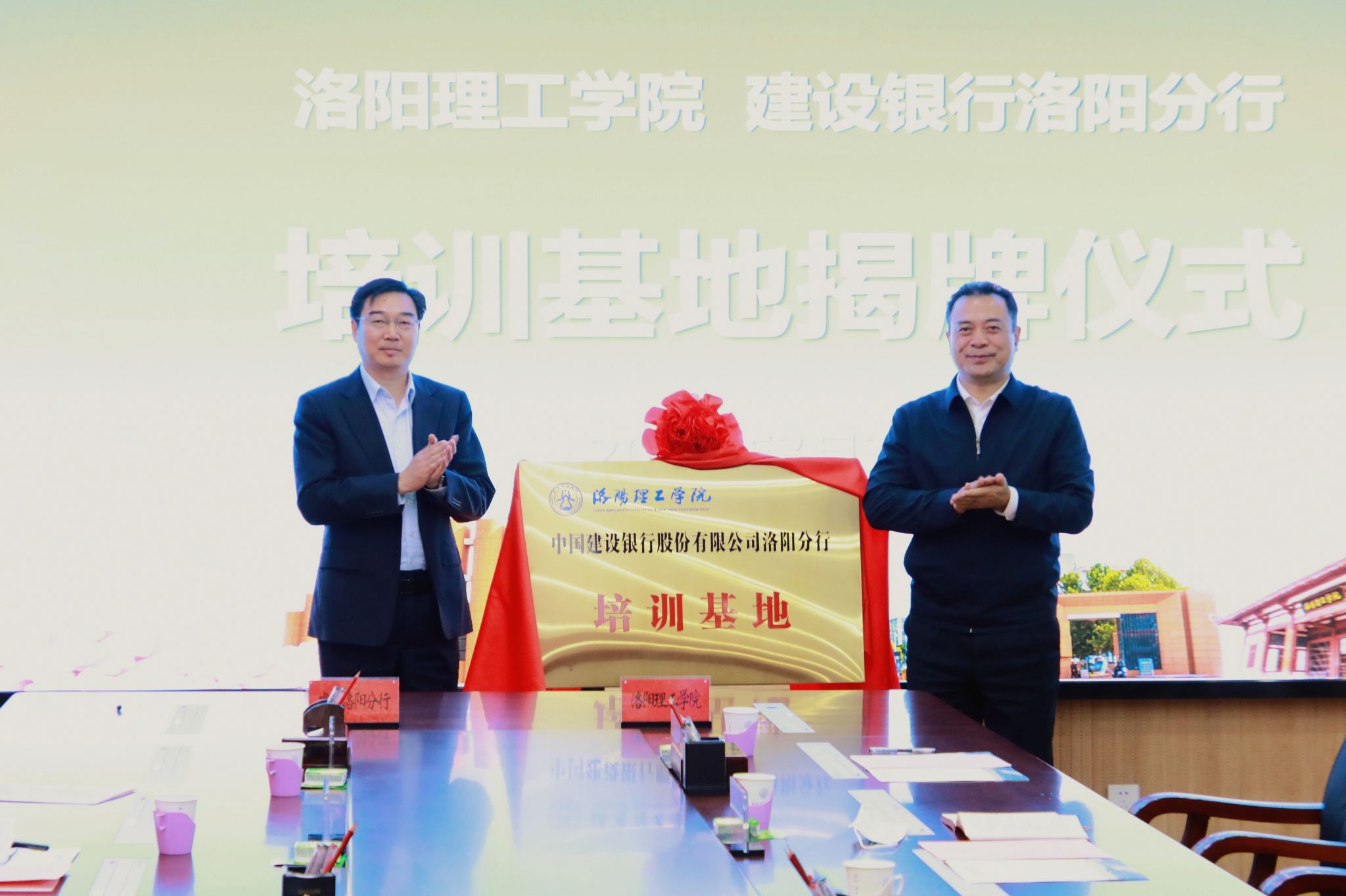 张颜君、张锐共同为“中国建设银行股份有限公司洛阳分行培训基地”揭牌。