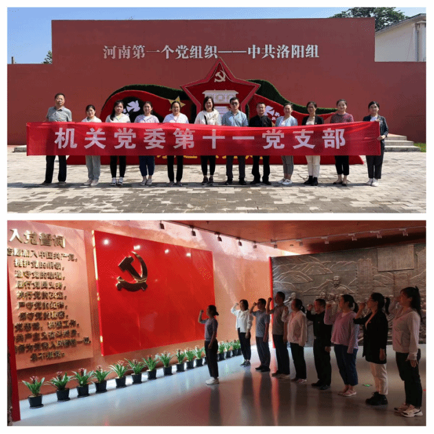 为深入开展学习贯彻习近平新时代中国特色社会主义思想主题教育,把习近平新时代中国特色社会主义思想转化为坚定理想信念,努力在以学铸魂、以学增智、以学正风、以学促干方面取得实实在在的成效,5月30日,在机关党委第十一党支部书记、财务处处长邹丽带队主持下,组织支部党员、入党积极分子以及科级以上干部赴红色教育基地,河南第一个党组织——“中共洛阳组”诞生地纪念馆开展主题党日学习活动。