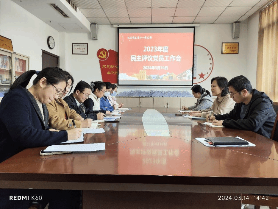3月14日下午,机关党委第十一党支部在行政办公楼120房间召开2023年度民主评议党员工作会,全体党员参加,会议由党支部书记邹丽主持。