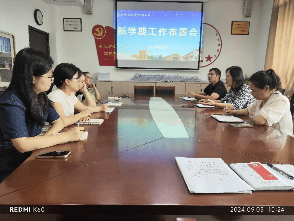 9月3日上午,财务处在办公楼120室召开新学期工作布置会,会议由处长邹丽主持,科级以上人员参加会议。