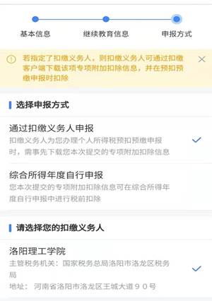 填写各项专项附加扣除时,最后一项申报方式请选择通过扣缴义务人申报—美高梅娱乐场