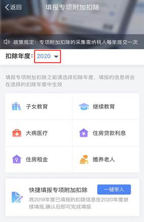 情形1:2019年已经填写专项附加扣除,2020年在2019年基础上继续申报