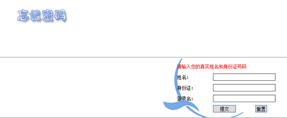 2、进入忘记密码页面,输入个人信息(登录名为工号后10位),提交;