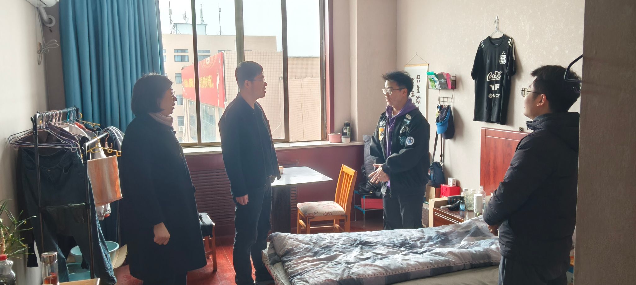 在宿舍走访活动中,研究生工作处深入了解研究生的住宿情况,重点检查宿舍安全、消防设施及网络安全,提醒研究生养成良好的生活习惯,注重饮食健康与运动,营造积极向上的宿舍文化氛围。邵处长表示,研究生工作处将持续优化管理服务,为研究生提供安全、温暖的学习与生活环境,切实解决学生的实际需求。