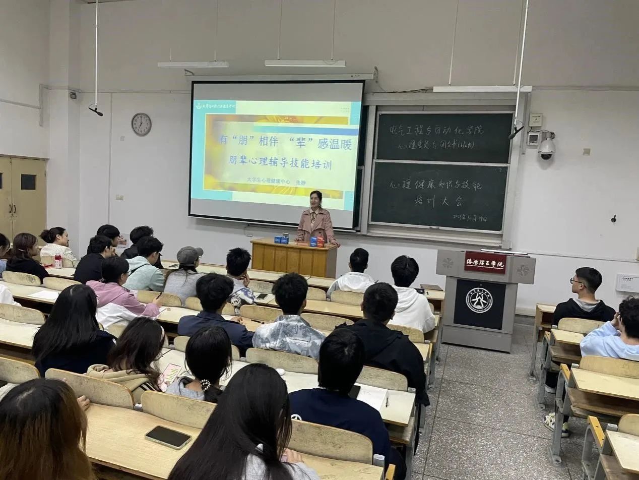 为了更好的关注大学生心理健康,促进同学间的和谐相处。2023年10月19日,大学生心理健康中心张静老师开展了“有‘朋’陪伴,‘辈’感温暖”的主题心理健康知识与技能培训大会。