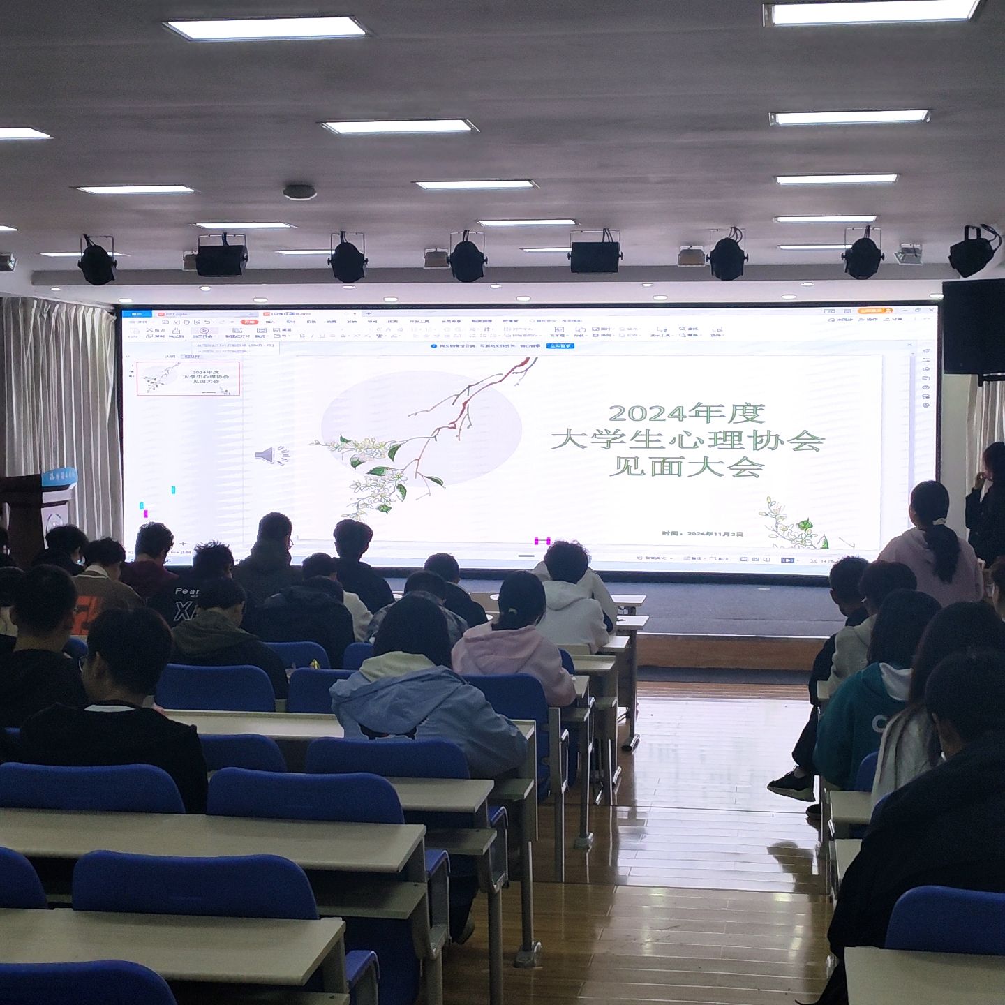 2024年11月3日晚上七点,大学生心理协会2024届新生团建晚会在大学生心理健康中心情景剧场进行。