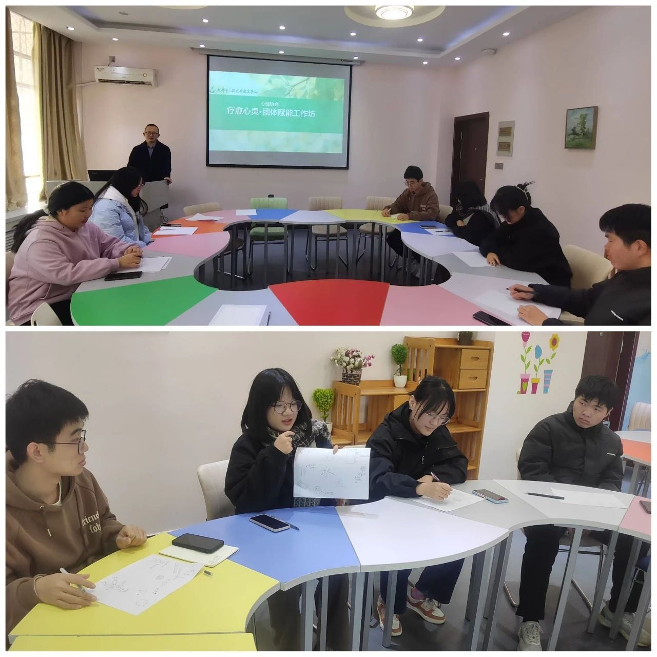 11月28日下午,心理协会开展了一场面向社团干部的团体心理辅导活动,旨在提升团队成员互动融合,提高团队凝聚力,增强协会成员的自我认知。活动由杨园林老师开展,心理协会王城校区学生骨干参加体验。
