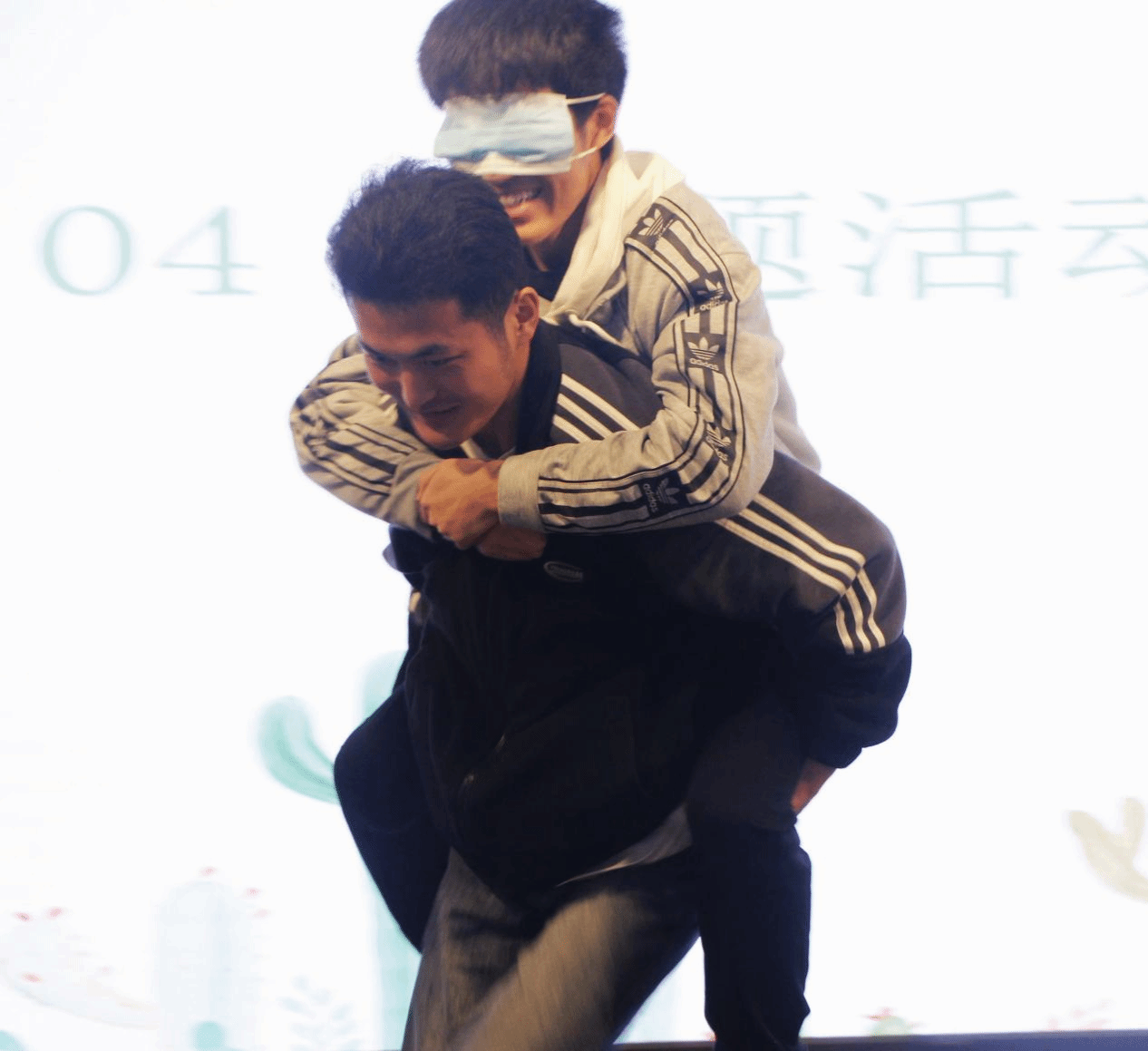 最后,进入本次团辅的主题活动“信任之旅”。通过游戏,让学生体验助人与受助的感受,增加对别人的信任与接纳。同学们两两结合,分别扮演“盲人”与“哑巴”,在短时间内建立默契,互相扶持穿过障碍。游戏结束后,赵亚苹老师让扮演“盲人”的同学摘下眼罩重新观察布满障碍的场地,提醒大家当从不同的角度感受生活中的困难时,可能会有豁然开朗的感觉。同学们还分享了在活动中互相搀扶时对彼此的信任感,同时也意识到了语言沟通的重要性。
