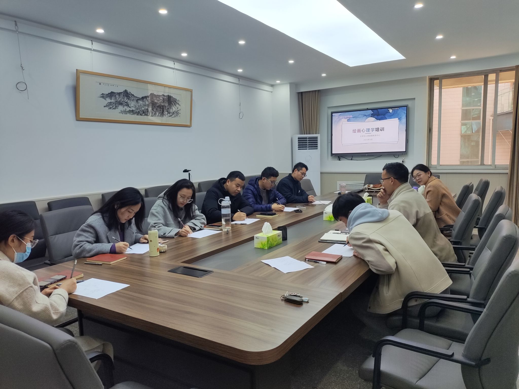 本次绘画心理培训的组织不仅使参与的老师达到了自我疗愈、自我释放的良好效果,同时还初步掌握了绘画心理分析的操作技术,为日后学生心理健康教育工作的深入开展创造了条件。大学生心理健康教育中心也将持续开展“绘画心理分析”专题培训活动,提升专兼职心理咨询队伍的业务能力,拓宽心理健康教育途径,为学生提供更好的心理服务。