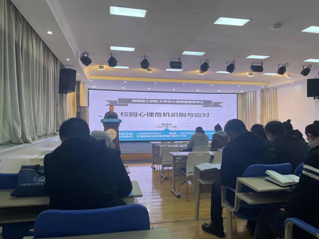 接着,大学生心理健康教育中心杨园林老师给大家进行校园心理危机识别与应对的专题培训。杨园林老师从预警、识别、评估、上报、监护和存档几个方面入手向大家介绍了危机干预的基本流程和注意事项,分享了和学生谈话过程中通过基本信息、亲子关系、社会支持、幻觉鉴别、自杀评估和就医意愿等角度深度了解学生的心理动向和危机信号,进行及时有效的预警与干预。