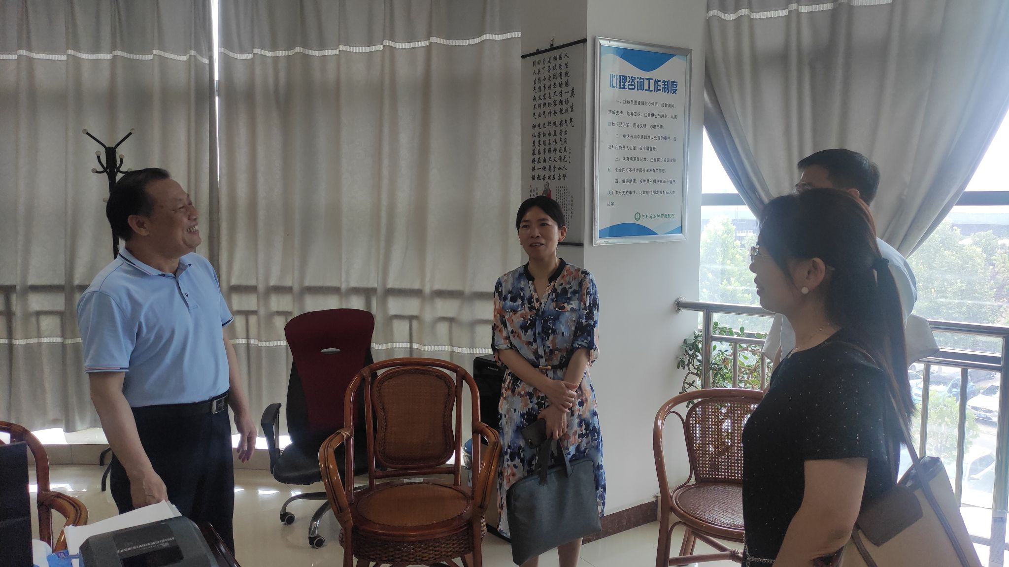 6月14日上午,学生工作处处长张克胜带队到河南省荣康医院调研交流,大学生心理健康教育中心主任卢爱新和校医院副主任刘晓梅等参加调研。河南省荣康医院党委书记范化兴、院办公室、医保办公室、门诊部和心理咨询科等相关科室负责人陪同座谈。