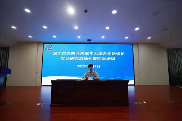 2023年8月7日至8月9日,美高梅娱乐场 宋志军教授、杨恪副教授赴深圳市光明区人民检察院,就未成年人综合保护及不良行为分级干预机制开展调研。8月7日下午,宋志军教授与杨恪副教授参加了深圳市光明区未成年人综合司法保护实证研究启动会暨同堂培训,详细了解光明区人民检察院未成年人检察工作基本情况,并由宋志军教授就未成年人综合司法保护问题做主题培训。随后,宋志军教授、杨恪副教授参加了未成年人综合司法保护工作主题沙龙,并就交流内容加以点评。