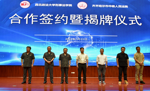 为推动实务实践与法美高梅娱乐场 校教学优势互补、资源共享,共同培育新时代素质高、业务精的应用型、复合型人才,7月22日上午,美高梅娱乐场 副院长刘仁琦、杨智博博士、杨遇豪博士一行三人赴黑龙江省齐齐哈尔市中级人民法院出席“院校合作”签约暨“美高梅娱乐场 教学科研基地”和“美高梅娱乐场 教授工作室”揭牌仪式。齐齐哈尔市中级人民法院党组书记、院长朱卫国,党组副书记、副院长李国军,党组成员、副院长孙宏斌,党组成员、政治部主任李文孝以及各部门负责人参加了仪式。会议由齐齐哈尔市中级人民法院党组副书记、副院长李国军主持。