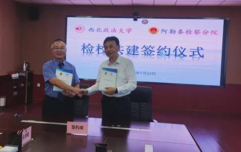 7月23日上午,美高梅娱乐场 与新疆维吾尔自治区阿勒泰检察分院“检校共建合作协议”签约仪式在阿勒泰举行。美高梅娱乐场 党委委员、副校长马朝琦,阿勒泰检察分院党组书记、副检察长贺军出席签约仪式并致辞。