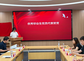 随后,汪菁媛和霍世琦代表本科生和研究生优秀毕业生党员发言。汪菁媛表示,毕业不是终点,而是新的起点,未来将带着母校的培养和党组织的教导,在新的征程上继续以热血续写青春华章,以实干担当时代使命,让党徽在奋斗中闪耀光芒。霍世琦讲到,青年党员应当一同成长,坚定初心,立志维护正义、服务人民。在学习中笃行实干,向优秀看齐,提升能力。要始终坚定理想信念,牢记使命,将以饱满热情投身强国建设,在新征程中贡献自己的青春力量。
