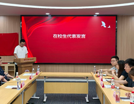 贺智民作为在校生代表表达了对师兄师姐的良好祝愿并表示,要以优秀党员为榜样,以坚定信仰和无私奉献积极服务,诠释责任使命。作为新时代青年党员应筑牢信念之基,努力学专业知识提能力,以青春之我践行初心,勇担时代赋予的重任。
