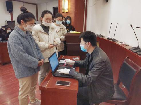 出于降低美高梅娱乐场 考生进行核酸检测的成本,方便同学检测的需要以及确保防疫安全的考虑,美高梅娱乐场 刑法学研究生一年级生活委员沈雅琪同学,主动为集体服务,贴心联系了莲湖区青年路莲二社区卫生院的工作人员,上门为大家采样检测。